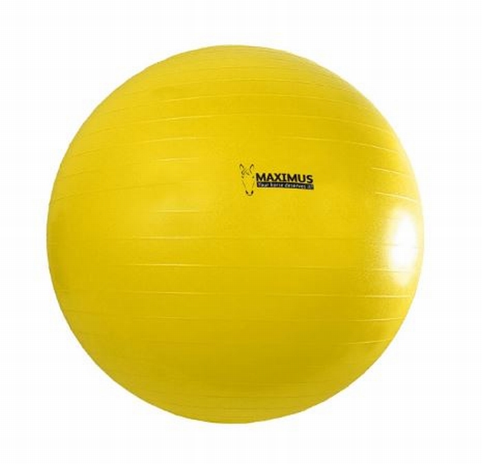 Ballon Maximus Power Play en jaune, disponible en tailles 65 cm et 75 cm. Jouet d’exercice durable et amusant pour chevaux, favorisant une activité saine et réduisant l’ennui.