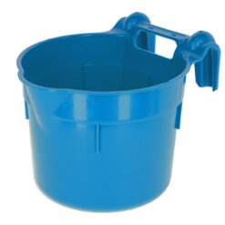 Sturdy, impact-resistant feeding bowl with mounting brackets. Suitable for feed or water, in the stable, pasture or on the go. Easy to hang on walls or fences up to 40 mm thick. With handle, pouring spout and 8 L capacity.
