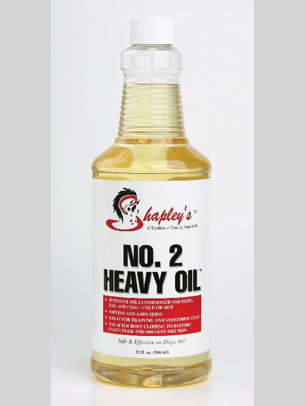 No. 2 Heavy Oil is a wonderfully rich, deep conditioning oil. It is a great intensive oil treatment used either cold or heated to add needed oils back to skin, coat, mane and tail. It adds shine back to dried, damaged skin and hair while softening and adding vitality.